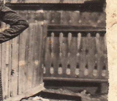 Figyelemre méltó a tornácosház előtt álló leánycsoport mögötti, utcai kerítés igényes mintázata.